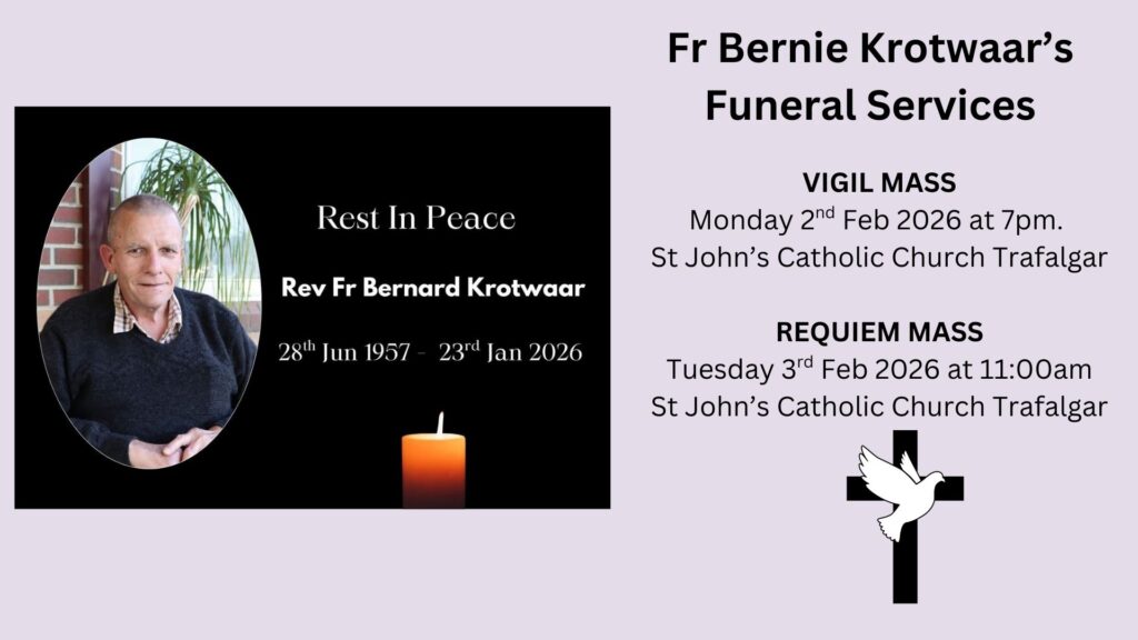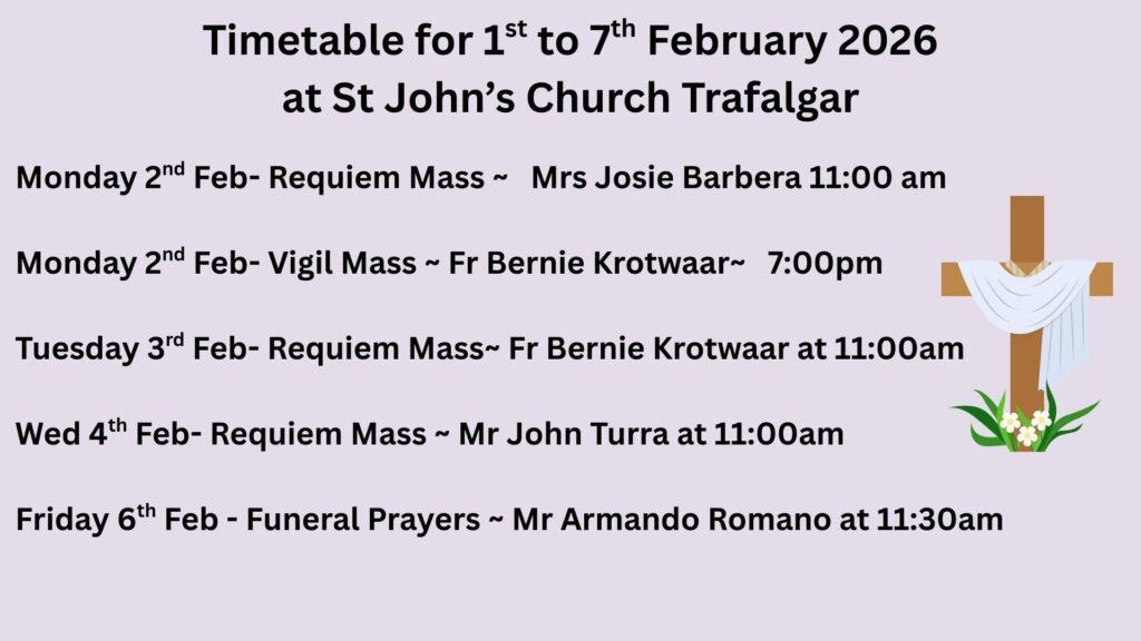 Welcome to St John's Parish Trafalgar & Yarragon Click here for Catholic Diocese of Sale Website Click here for St Joseph's School Website Click here for Marist-Sion College Website